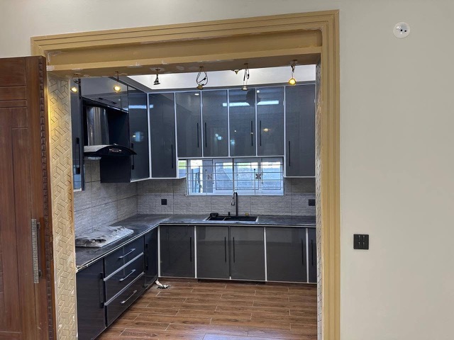 Fans, curtains, branded sanitary fittings, PVC kitchens, and pure wooden doors are already installed. The house has a modern elevation and elegant interior finishes.