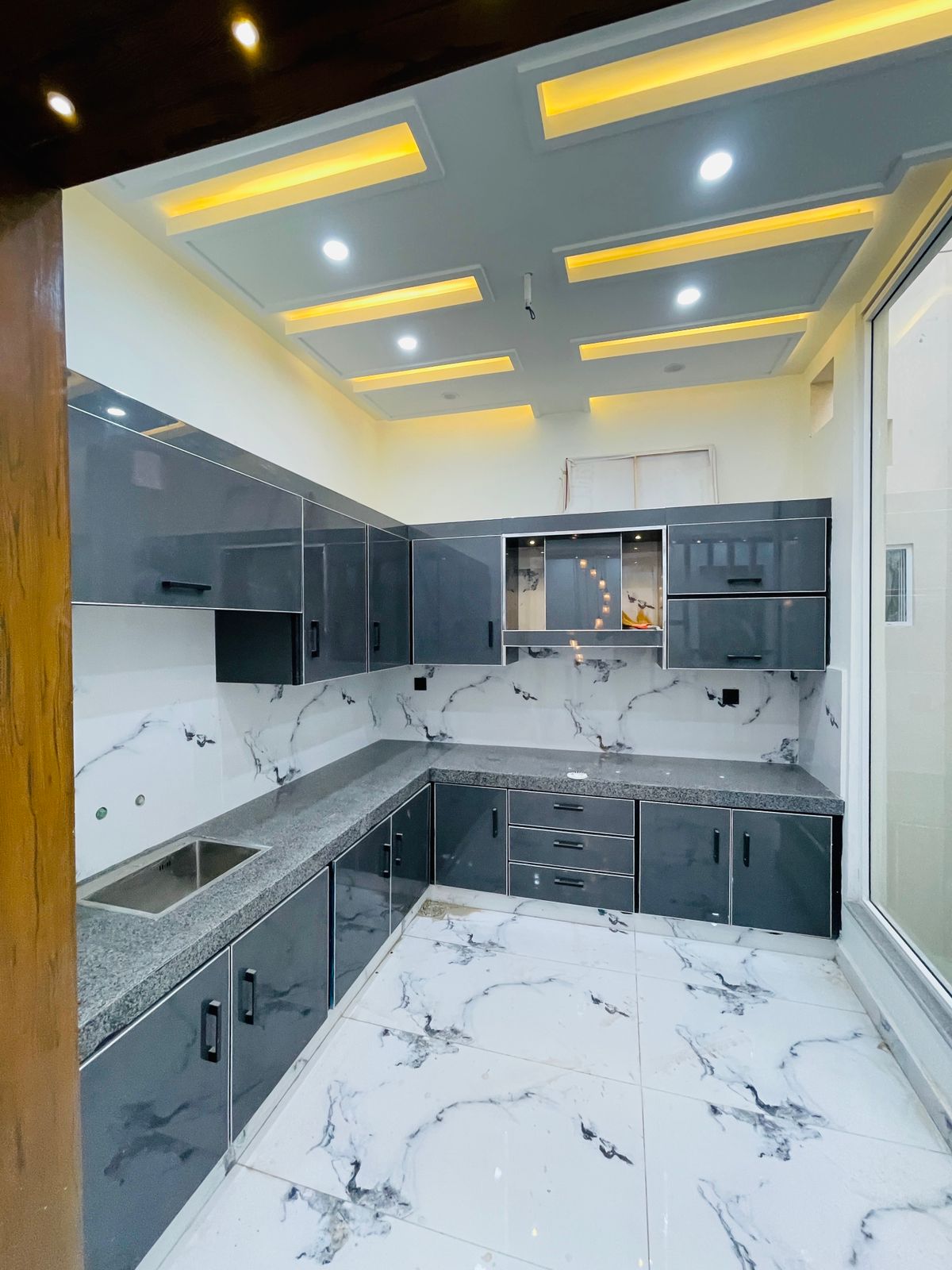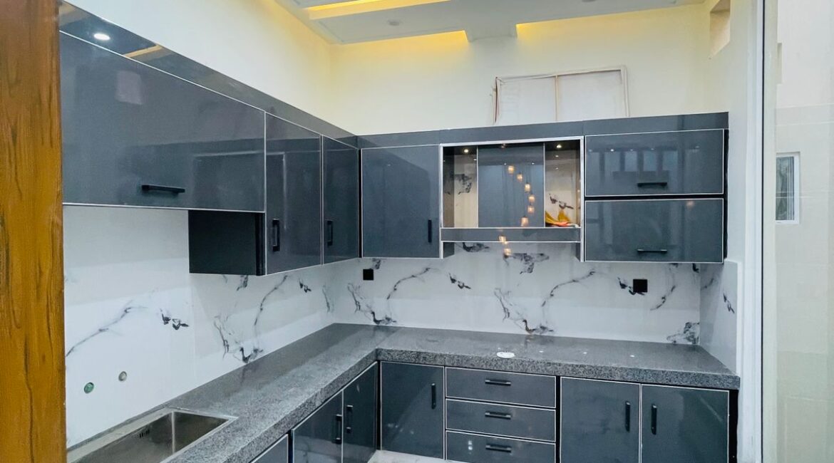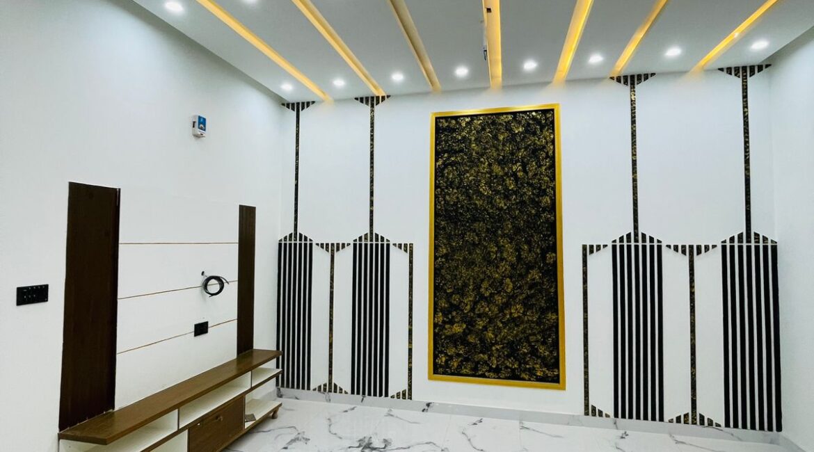 This 11 Marla beautifully constructed house is located at Lassani Pulli on Sargodha Road, Faisalabad — a prime and fully developed area. The house offers 5 master bedrooms with attached bathrooms, 2 stylish TV lounges, 2 well-designed kitchens, a separate drawing room, a store room, a laundry area, and a spacious porch with car parking space.
