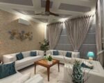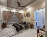 The single-unit layout is perfectly suited for a high-end family lifestyle, featuring four master bedrooms with attached bathrooms, ensuring ultimate privacy and comfort. The common areas are luxurious and functional, offering a large drawing room with an accompanying powder room for guests, two separate TV lounges (one on each floor) for family comfort, and a spacious dining space. The modern kitchen is a highlight, featuring full accessories and attractive deco-painted cabinets. Furthermore, the house is equipped for modern, energy-efficient living with a  solar system installed, along with security cameras and a projector. The house is conveniently within walking distance of the park, mosque, and commercial area.