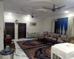 This spacious 13 marla double-story house offers an excellent opportunity for those seeking a large and well-equipped home. The property features a generous layout with seven bedrooms and washrooms, two kitchens, and two T.V. lounges, providing ample space for a large family. The house also includes separate drawing and dining rooms, ensuring distinct areas for formal and casual gatherings. The interior is finished with high-quality tiles and marble, and the ceilings have excellent design work, adding a touch of elegance to the home. A spacious green lawn or “sehan” provides a pleasant outdoor space for relaxation.