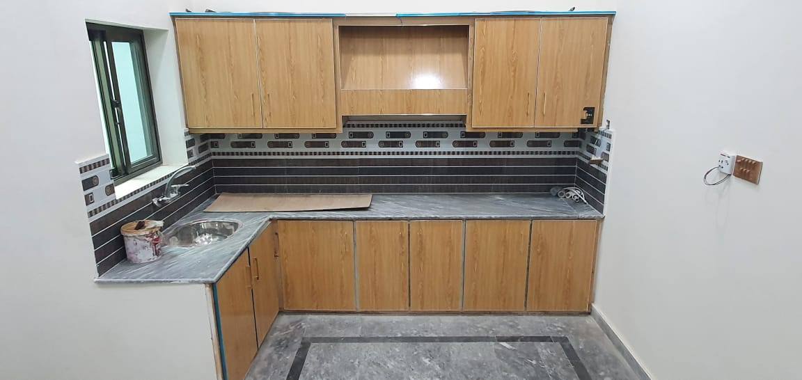 The house features 3 spacious bedrooms, 2 modern kitchens, and a well-connected TV lounge. It also includes a small car porch, open area for ventilation, and a separate electricity meter. A gas demand notice is also available. The construction is brand new, completed just last month using quality materials and a contemporary layout.