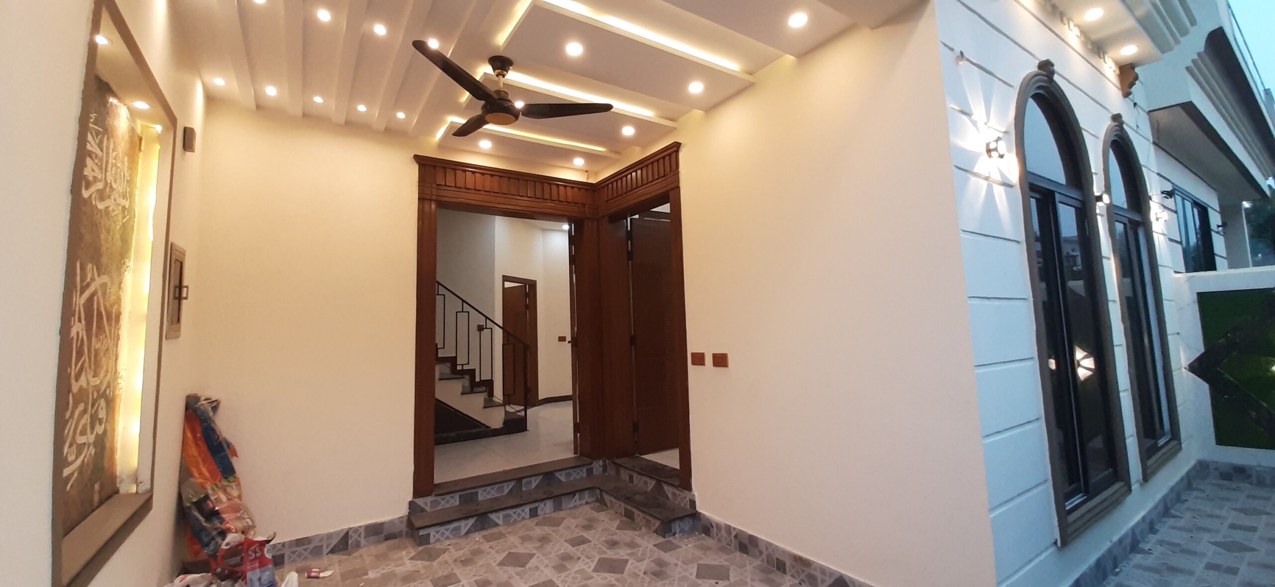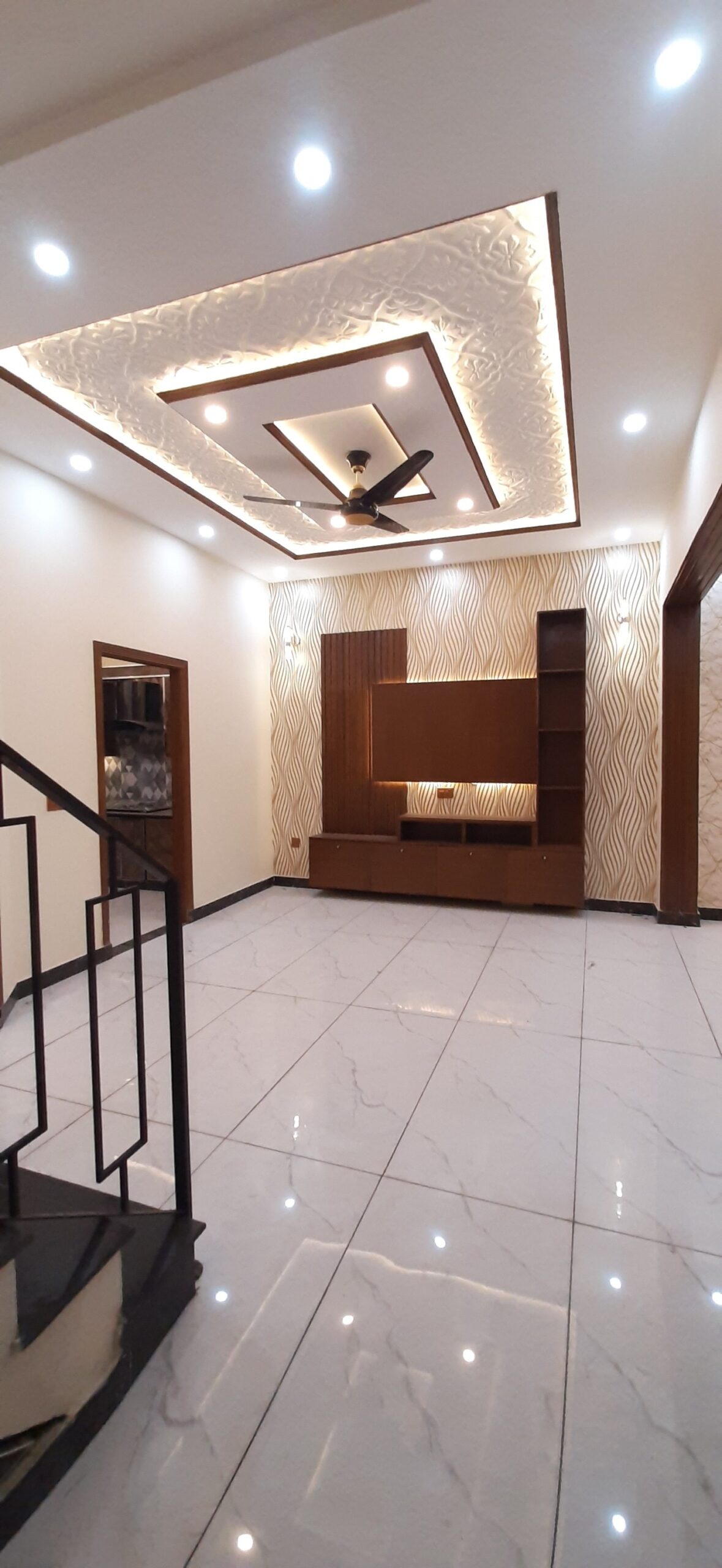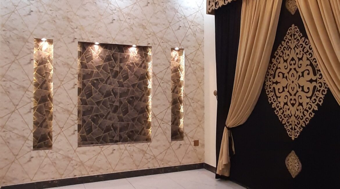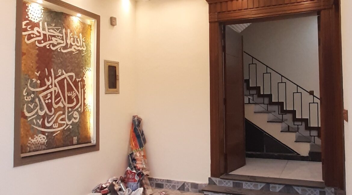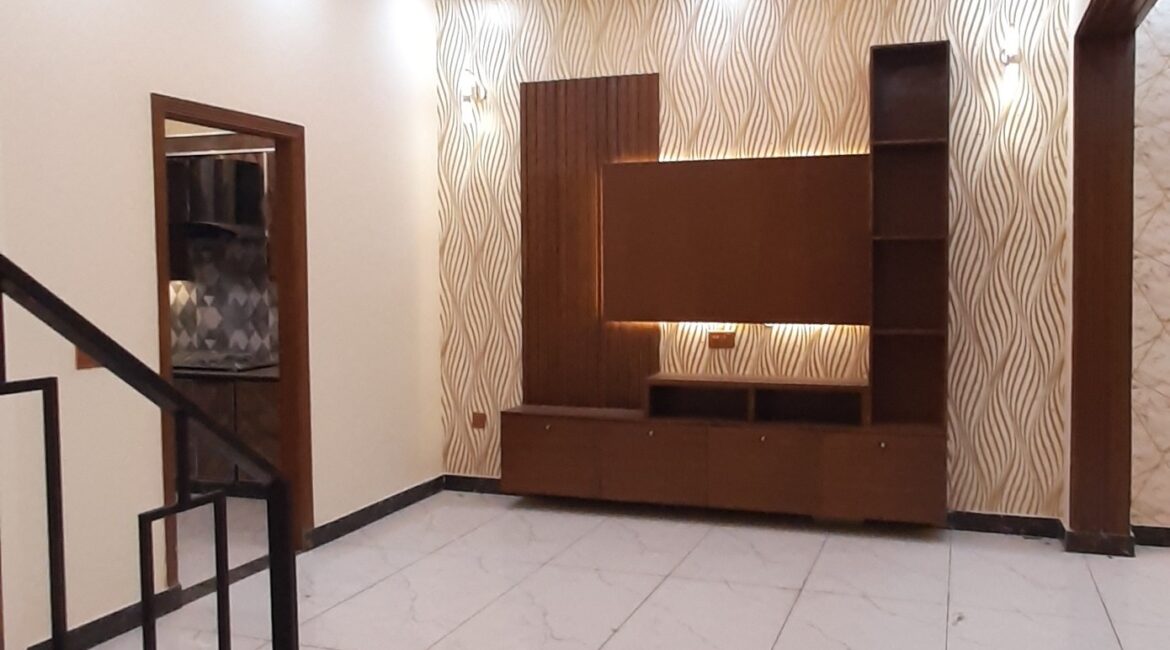 The house features 3 bedrooms, 4 bathrooms, 2 kitchens, a TV lounge, drawing room, and a car porch. High-quality finishes, tiled flooring, and elegant woodwork make it a perfect move-in-ready option.