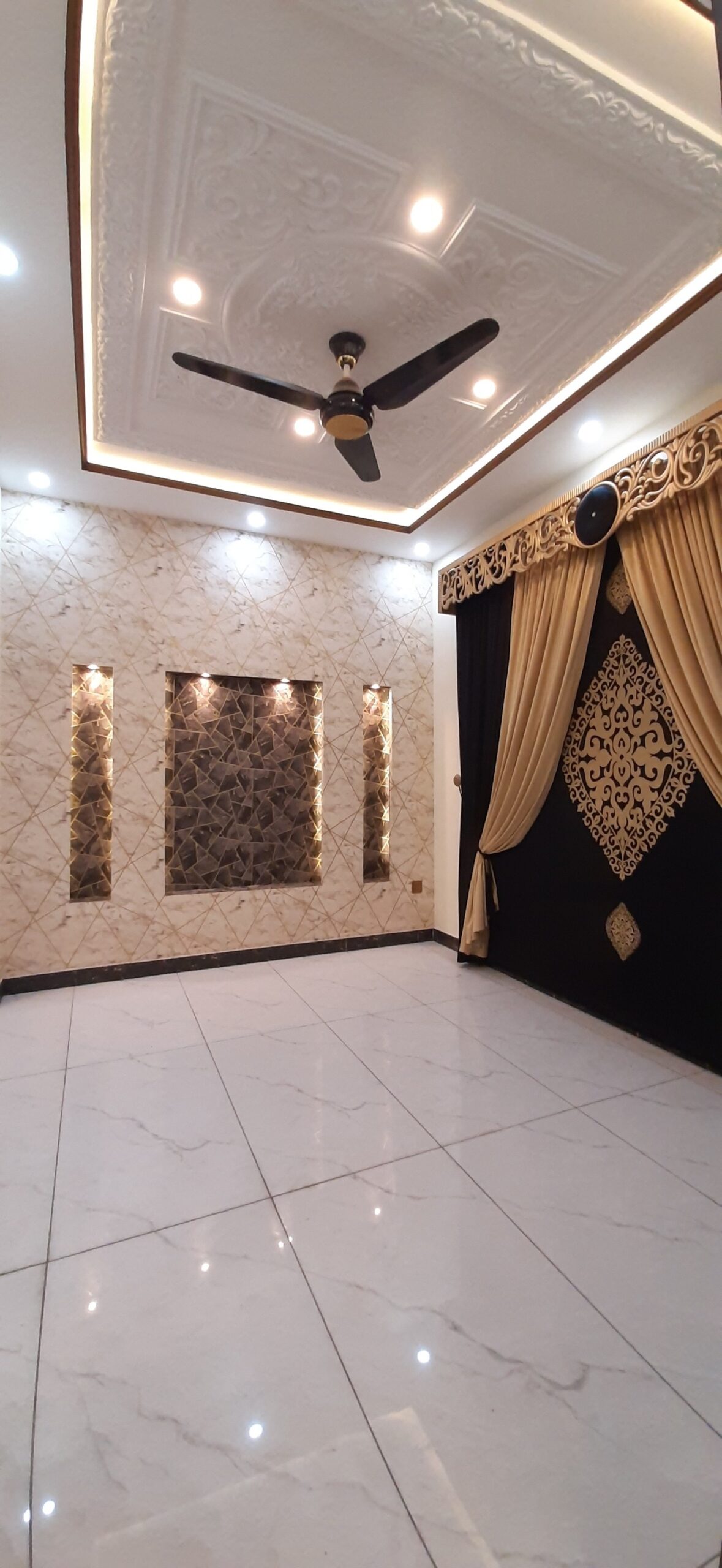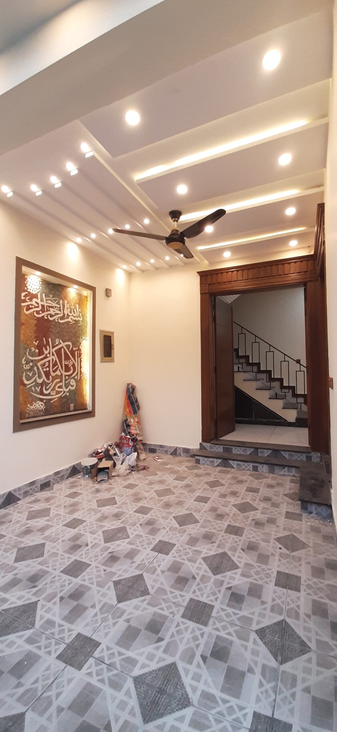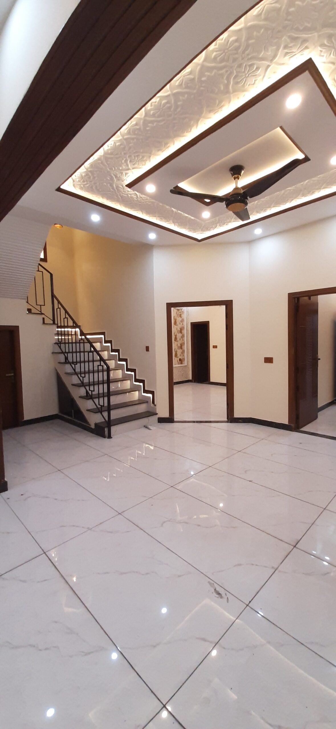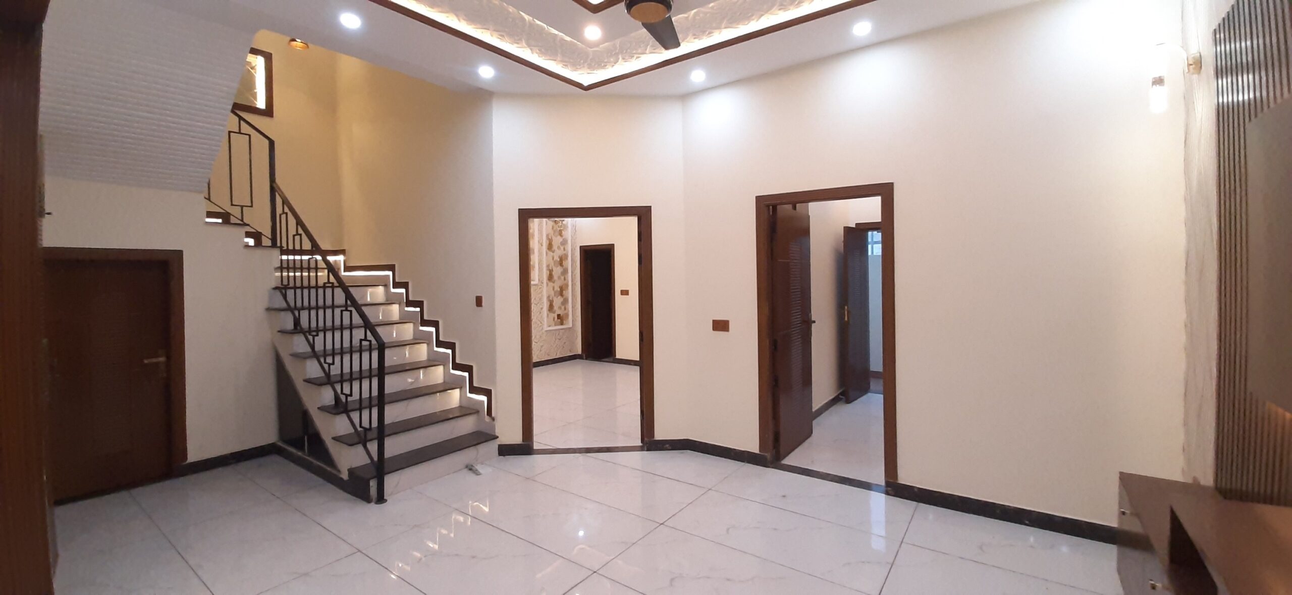 The house features 3 bedrooms, 4 bathrooms, 2 kitchens, a TV lounge, drawing room, and a car porch. High-quality finishes, tiled flooring, and elegant woodwork make it a perfect move-in-ready option.