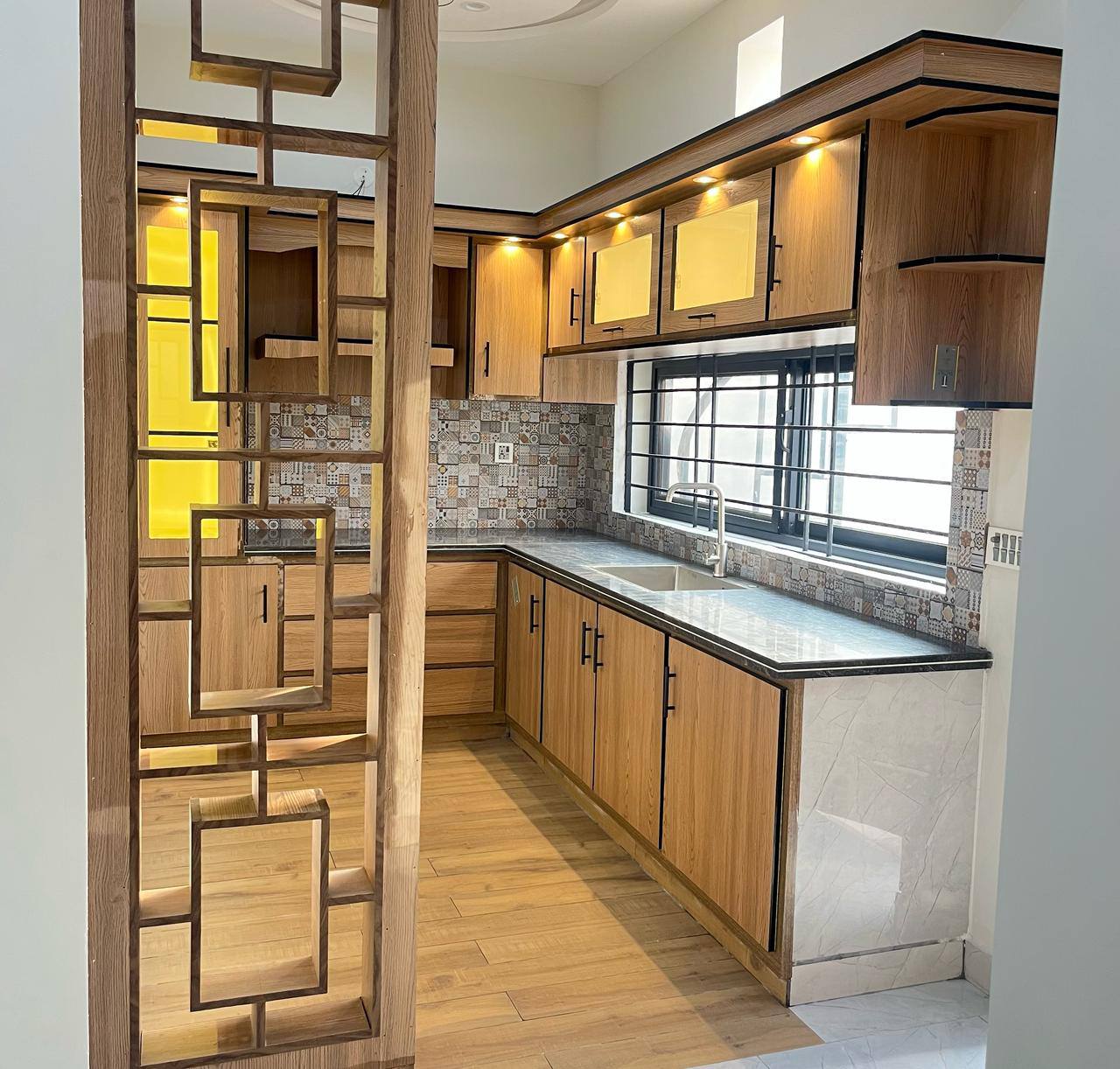 The house includes two kitchens (one on each floor), a car porch, a terrace, and a store room. Designed with high-quality tile flooring and elegant ceiling work, the home is move-in ready with all basic utilities like electricity and water available.
