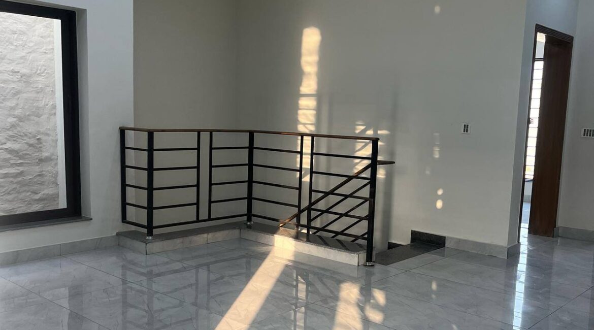 The house includes two kitchens (one on each floor), a car porch, a terrace, and a store room. Designed with high-quality tile flooring and elegant ceiling work, the home is move-in ready with all basic utilities like electricity and water available.