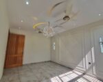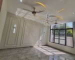 The expansive layout includes five airy bedrooms all complete with attached bathrooms and fixed wardrobes. The home offers multiple living and entertaining spaces, featuring one drawing room with a separate powder wash for guests, two beautiful kitchens, and two TV halls equipped with fixed media walls. Practical amenities include a garage for secure parking, a laundry area, and a terrace area. Furthermore, the property is fully equipped with modern utilities and fixtures, such as a 300-foot clean water bore, a UPS and batteries, a 55-inch LCD, installed ceiling and exhaust fans, a geyser with connections and geyser, and complete solar wiring. Interested individuals are encouraged to contact the agent for a site visit.