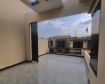This newly constructed double-story house, set on an 8-marla plot, offers a spacious and peaceful living environment. The home features five well-ventilated bedrooms, each with an attached bathroom and built-in closets, providing ample storage. It also includes a drawing room with a separate bath, two TV lounges with media walls, and two modern kitchens. The property is designed for convenience, with a dedicated car garage, a 300-foot clean water bore, an indoor lawn, a terrace area, and a separate laundry area.